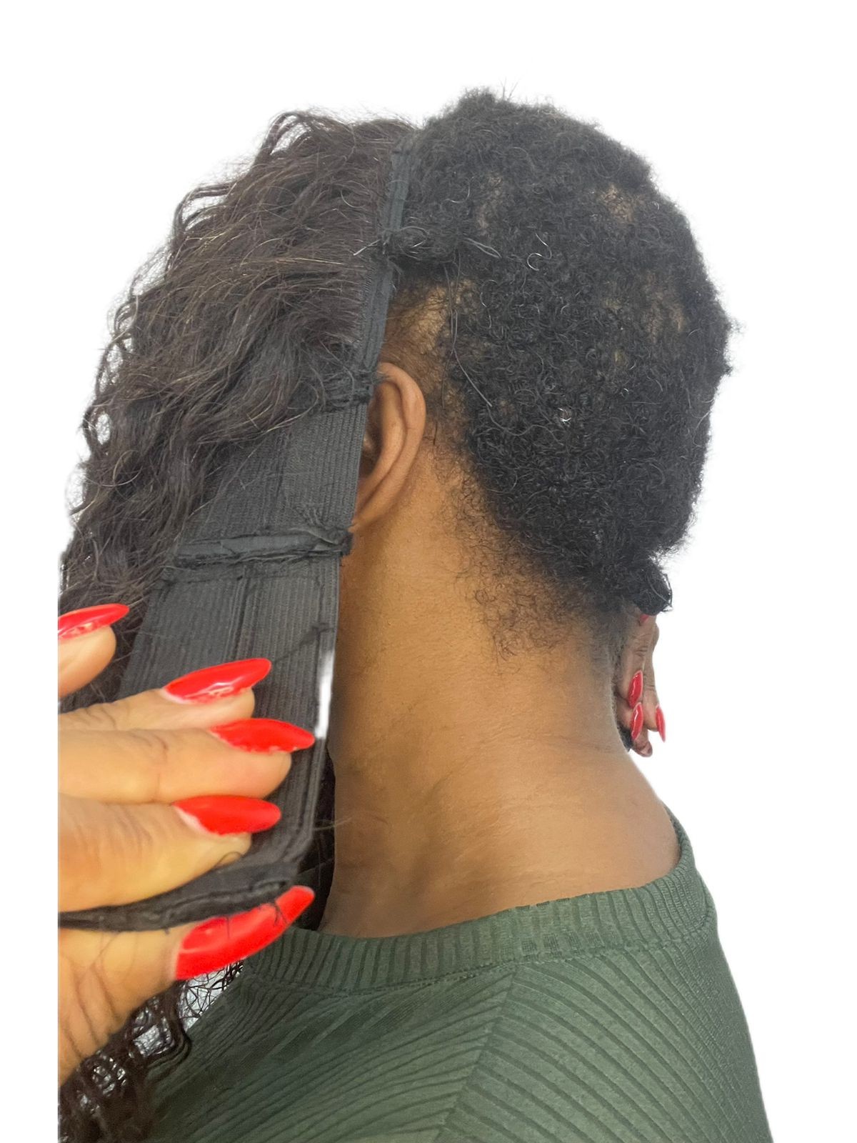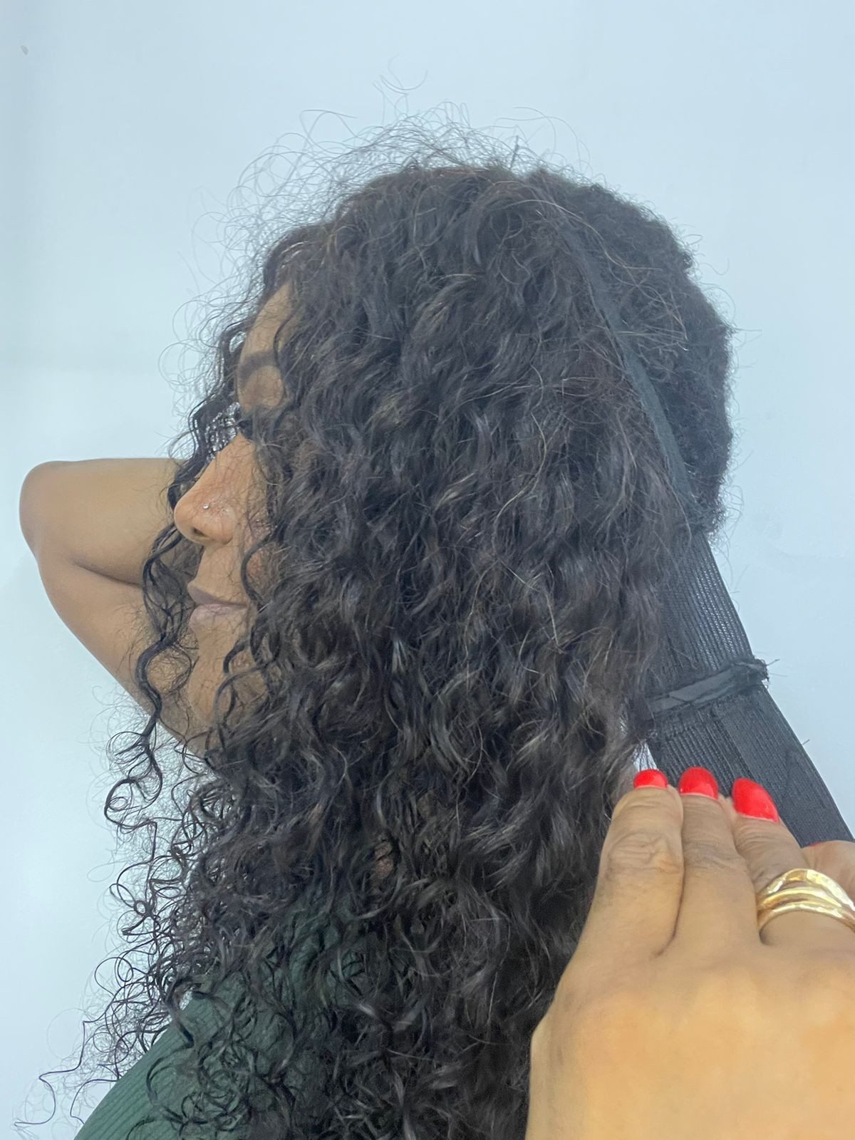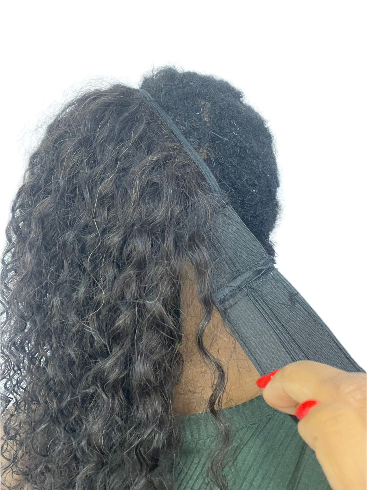 Disfarce frontal com velcro cacheado cabelo humano, 60cm,ideal para cobrir falhas frontais e laterais que o alongamento de cabelo cabeça toda não cobre Medida faixa 60 cm,peso 40 gramas.